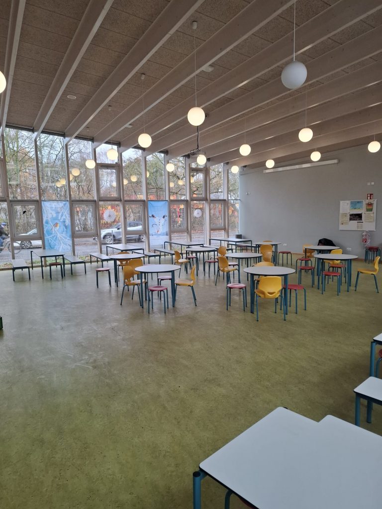Wir haben die Mensa mit modernen, kindgerechten Möbeln ausgestattet. Es gibt nun: